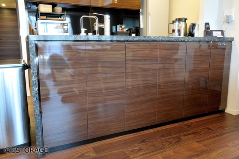 既設のシステムキッチンと同じカラーの扉と御影石の天板でお部屋全体にも統一感のある雰囲気になりました。