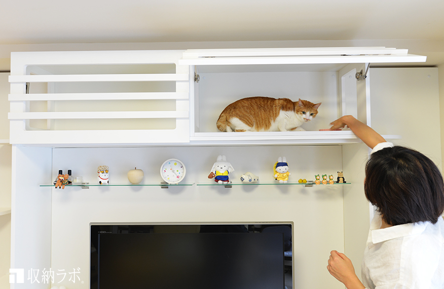 キャットウォーク付き壁面収納で、快適な猫との暮らしを実現。