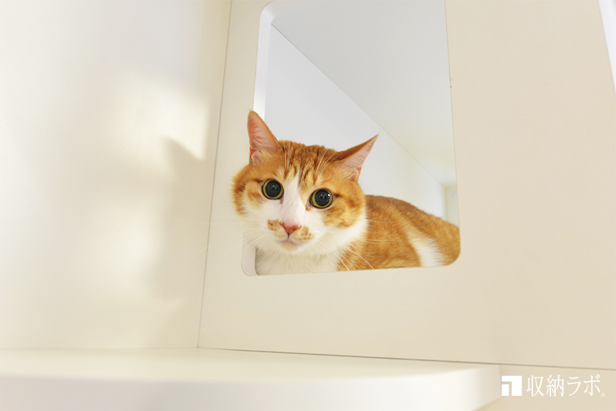 また、外出中には猫の様子を確認するためのビデオカメラで、キャットウォークの中で猫がくつろぐ様子を見ると安心できます。デザインも機能もいろいろこだわることが出来ましたし、毎回打ち合わせも楽しくて、何か不安なことがあっても確実に対応していただけたので、とても満足しています。