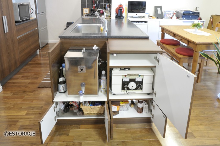 キッチンのカウンターにピッタリあわせた浄水器収納