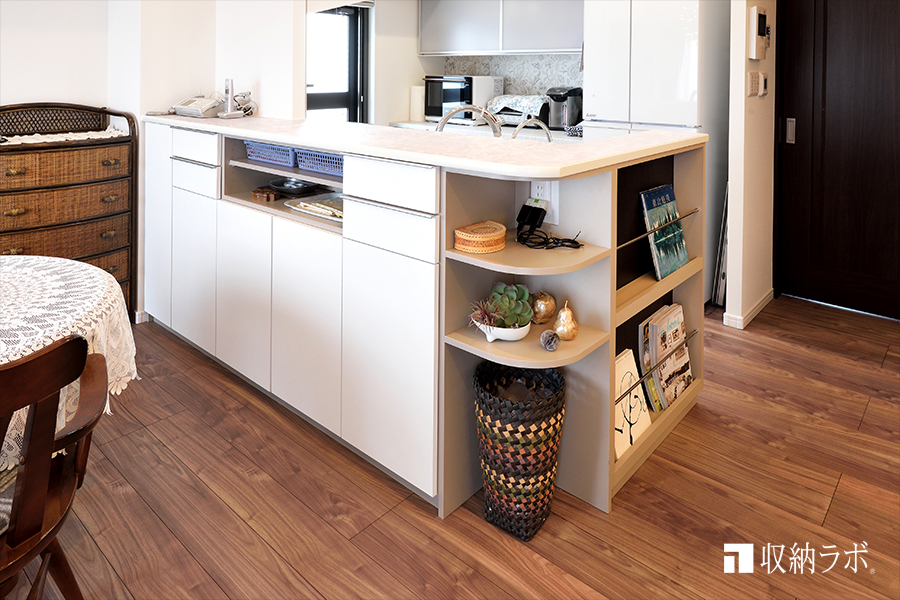 カウンター下収納には、使い勝手を考えて扉のないオープンスペースを。
