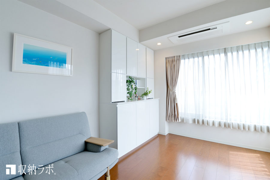 たっぷり収納出来て、圧迫感も軽減したリビング収納。