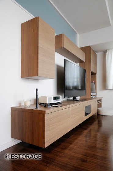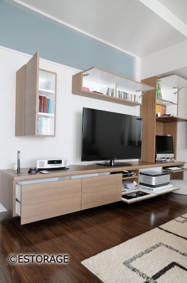 ご家族それぞれに専用スペースを設けたリビング壁面収納