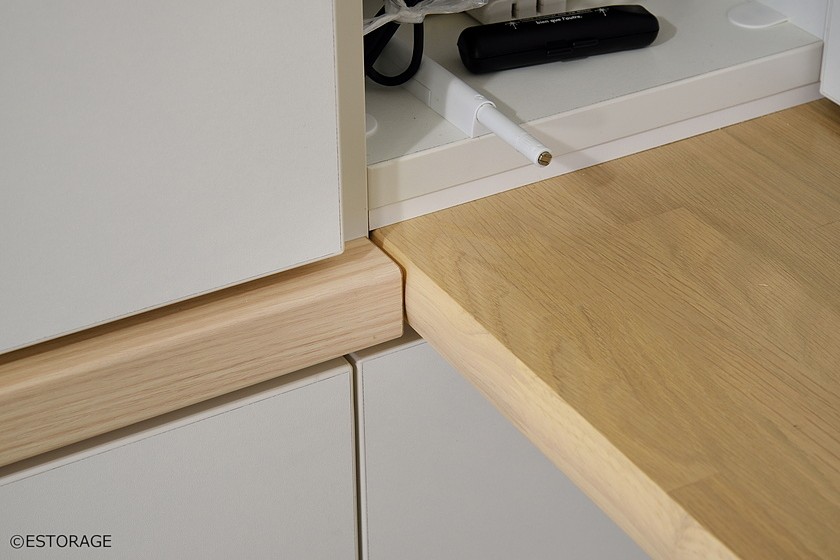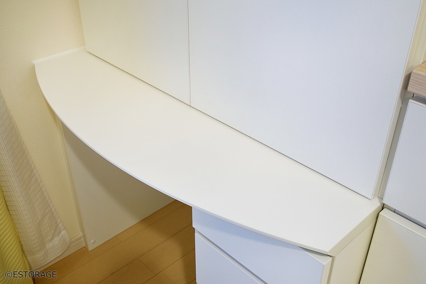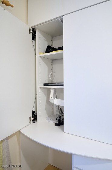 デスク使用時は扉を中に収納することで作業の妨げになることのないような工夫が凝らしてあります。