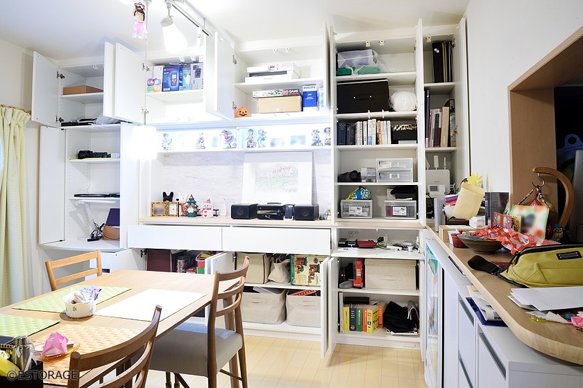 壁全体が収納スペースになったため、おもちゃ以外にも多数の生活用品の収納が可能になりました。