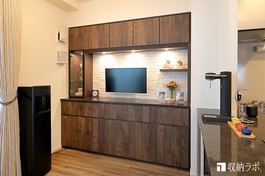 オーダー家具の壁面収納と食器棚で、新居に快適な収納を実現。