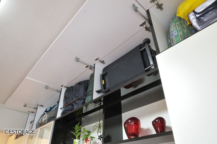 このように使用頻度の少ないキャリーバッグ等は、天井付近の大きなスペースに収納することができます。