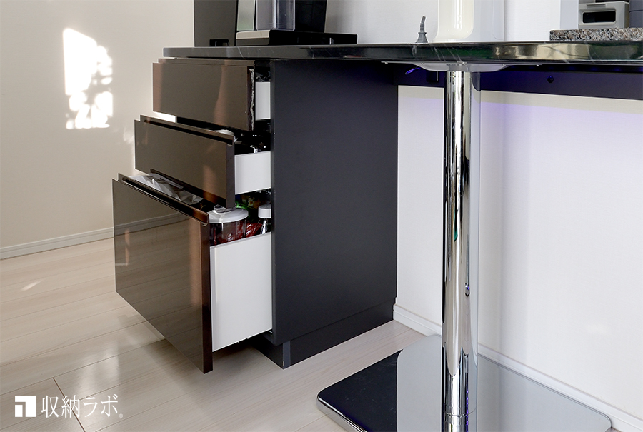 生活感を感じさないインテリアを実現するためには、日常使いするものがカウンターの上などに置かれないようにすることがポイント。こうした収納スペースがあることはとても重要です。
