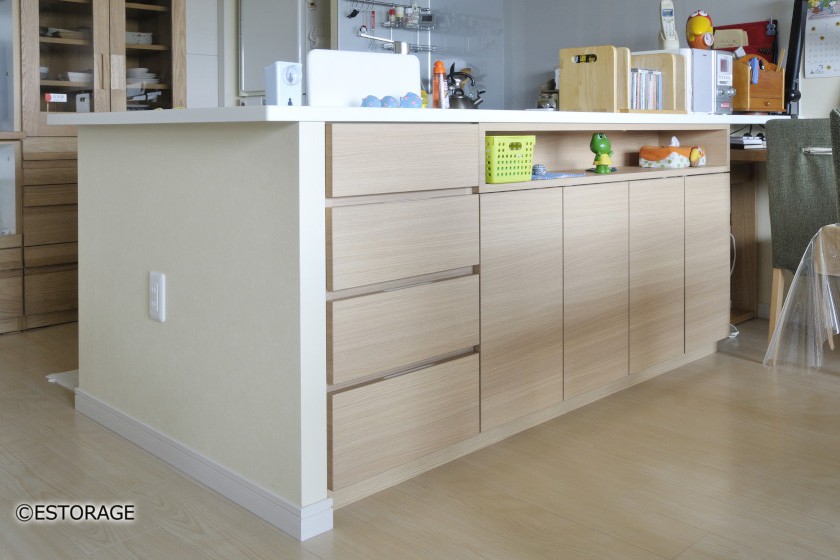 キッチンカウンター下のスペースにすっきりと収めたカウンター収納です。