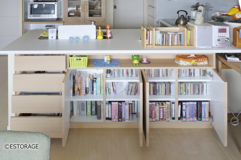 対面キッチン下に収納を確保したカウンター下収納