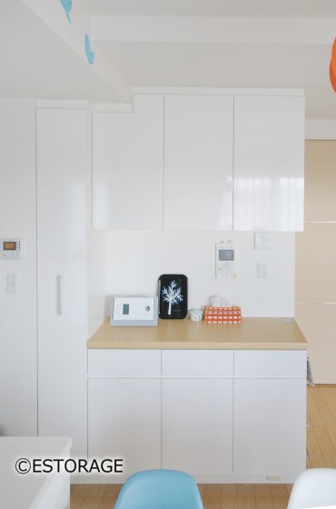 カウンター上は、家電を置いても配線が見えないように配慮。