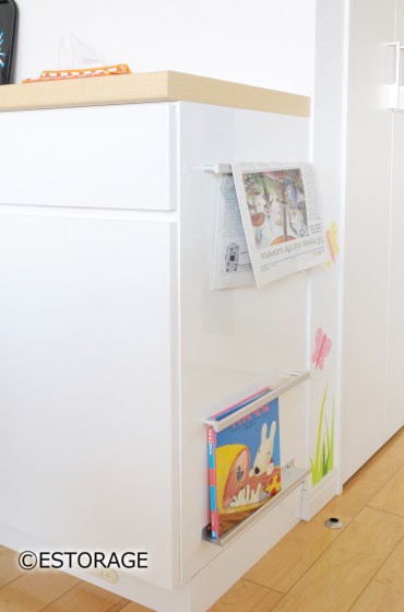 側面には、新聞や雑誌が置けるマガジンラックを設置しました。