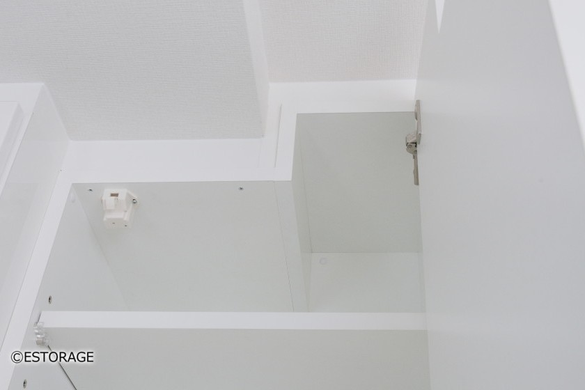 こうした、空間の出っ張りに壁面収納を設置する場合は、目線のラインをオープンにする事で、大きく圧迫感を抑えることができます。