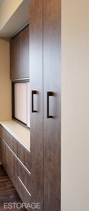 お部屋との統一感にこだわった、オーナー様の要望をカタチにした壁面収納です。