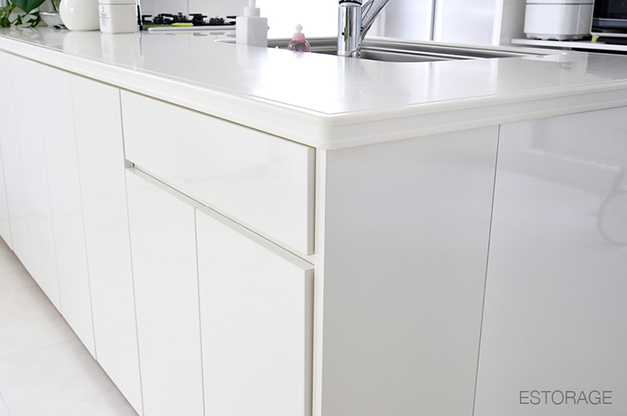 サイズについては幅、高さ、奥行きが、既存のキッチンカウンターにピタリと収まるように設計し、家具の色についても、白で統一されたLDKに馴染むように素材を選定しました。