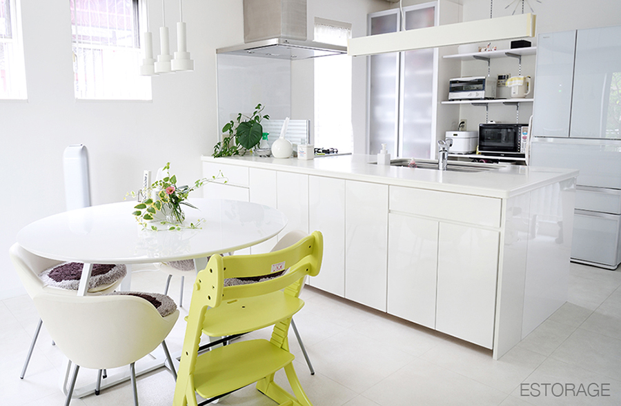 カウンター下収納が、親子のコミュニケーション スペースになりました。