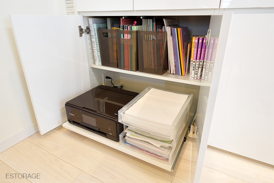 これによってリビングをすっきりと片付いた状態に保つことができ、奥様もご満足です。
