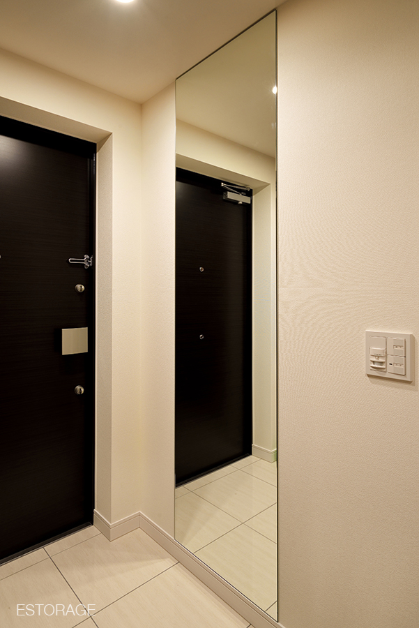 玄関に鏡があると、出かける前にパッとスタイル・チェックできるし、玄関先を広く感じられるのでお願いしました。
