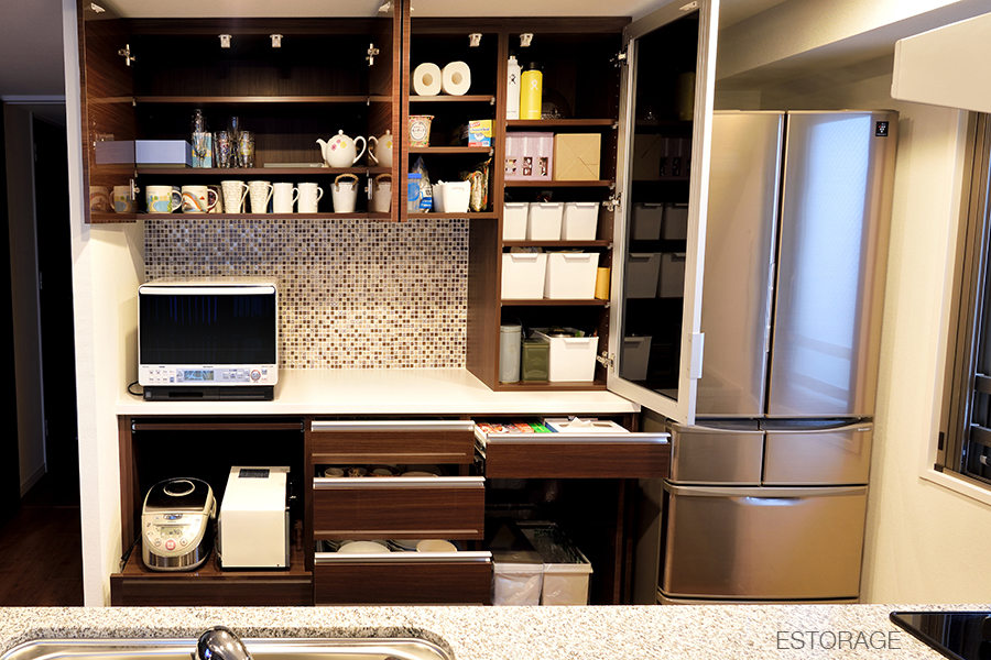 家電も使いやすい位置に収納出来て、使う時には引き出せるので便利です。その他の収納スペースもたっぷり確保出来たので満足しています。