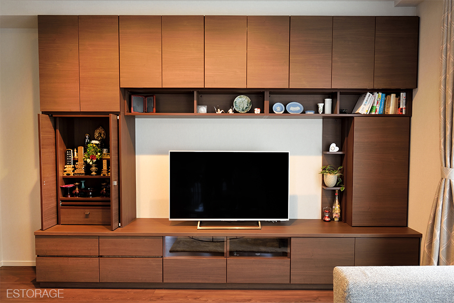 とにかく提案いただく内容には関心するばかり。仏壇が家具の中にスッキリ収まって、部屋全体に合うようにコーディネートされた壁面収納が出来上がってとても満足しています。