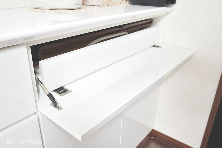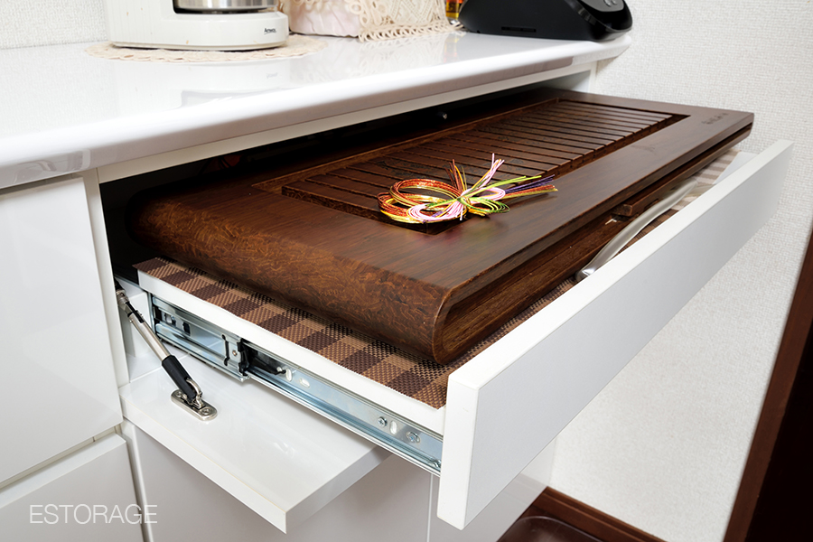 代わりに提案されたプランはスライド棚に茶器セットの茶盤を収納できるものでした。使い勝手を考えて、持ち運びの不安と手間を解消出来る事が気に入ったので、このプランにしました。