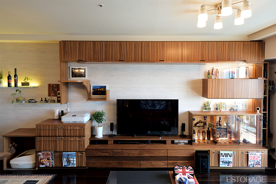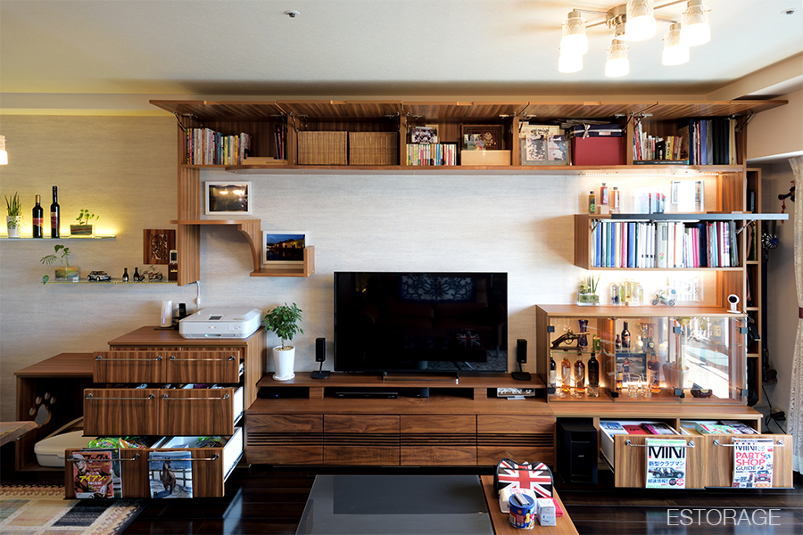 機能的な収納・こだわりのデザイン・さらにキャットウォークが付いたリビング収納が完成しました。