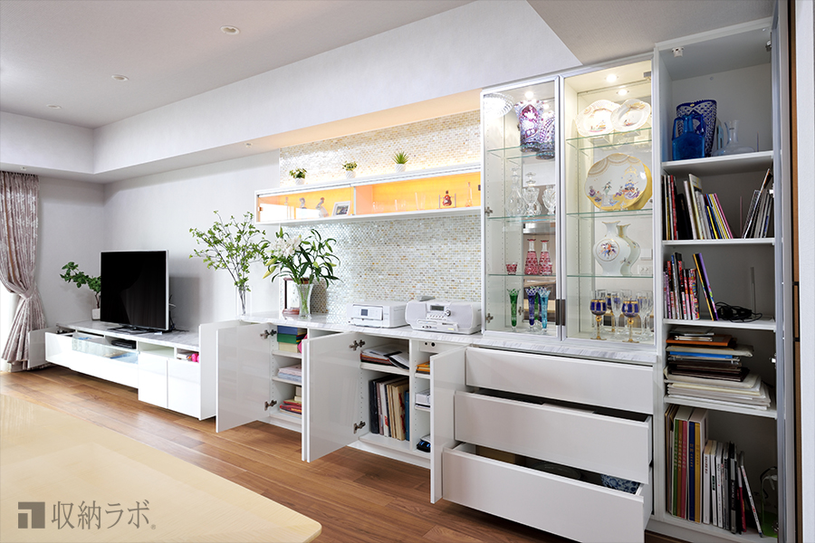 一緒にホームパーティーを楽しむ友人達にも、喜んでもらえるリビング収納が欲しかった。