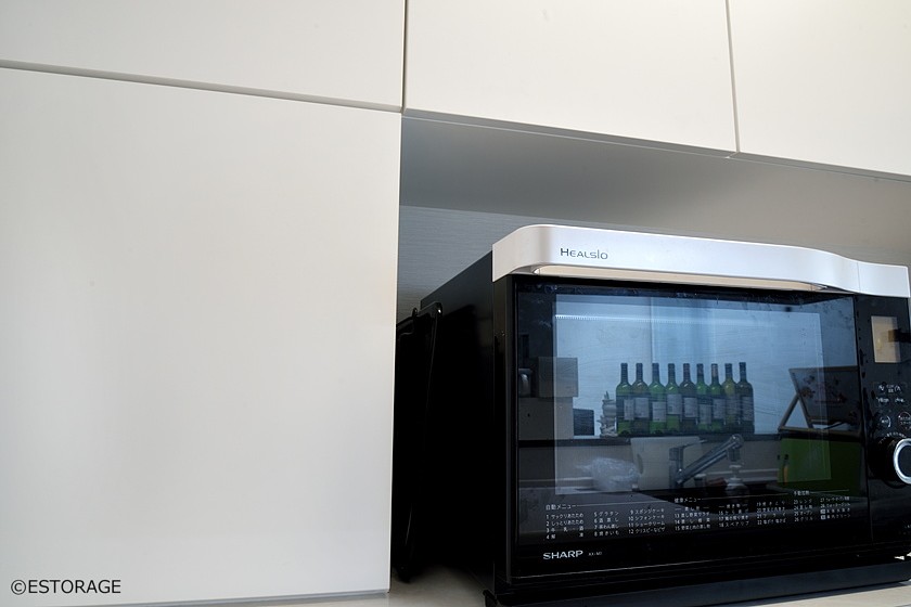 全体はホワイトでシンプルなデザインですが、キッチンカウンターの高さや収納部の配置など、キッチンスペースでのあらゆる作業を想定したキッチン収納となりました。