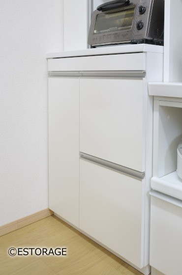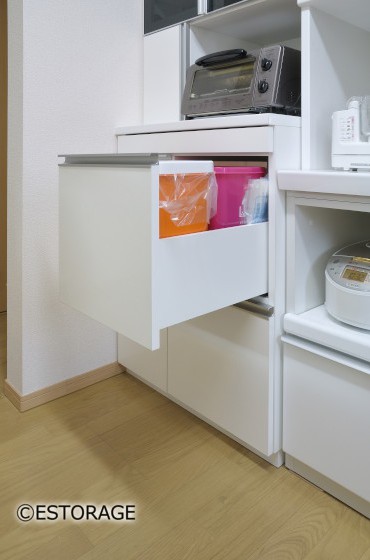ゴミ箱を引き出しの中に隠す事で見た目をスッキリとさせました。