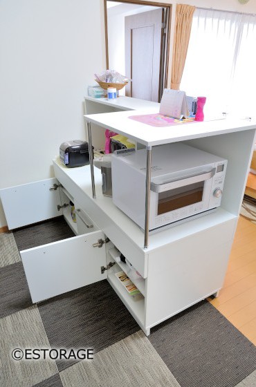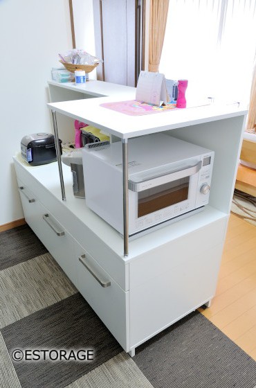 ダイニングとキッチンを間仕切る移動式のカウンター収納です。