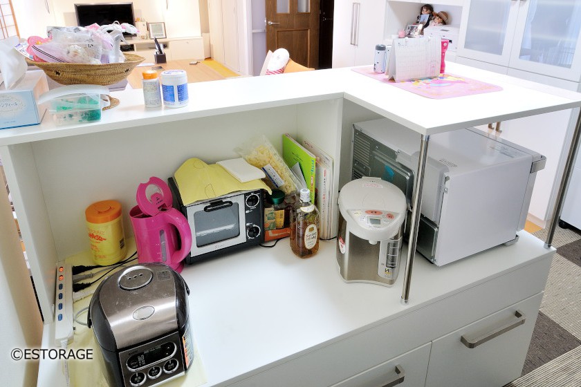 キッチン側からは、家電が使え、配膳用のカウンターにもなります。