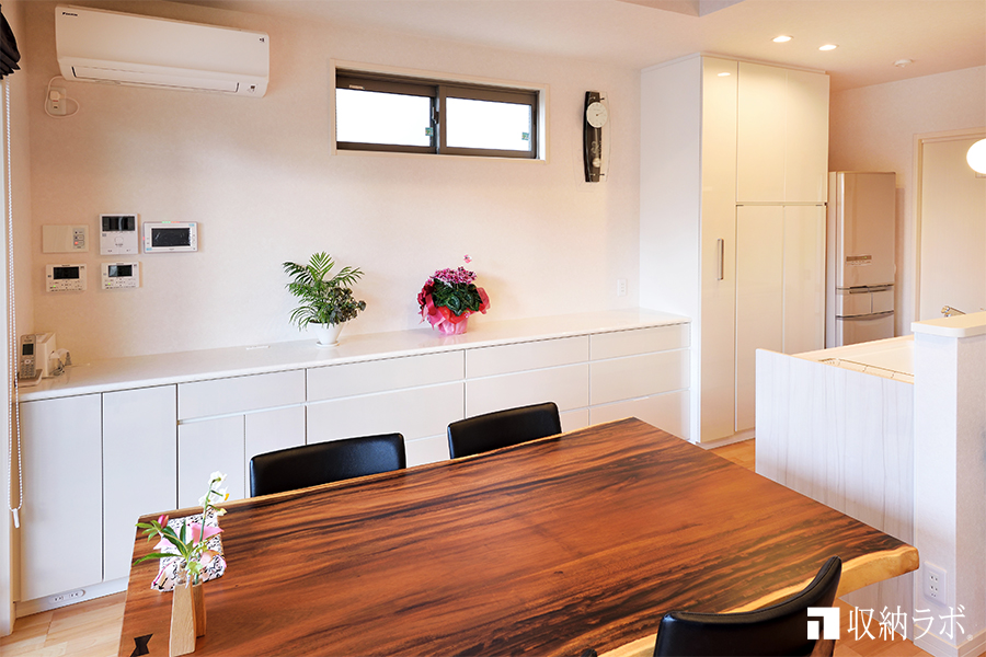 多機能な収納と部屋を明るくするダイニング壁面収納