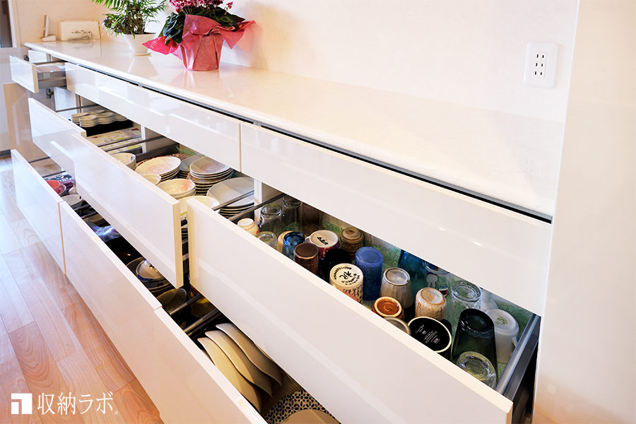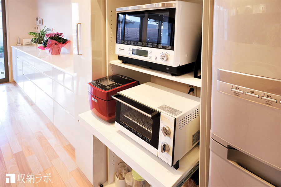 今まで食器棚として使っていたカップボードには収納量に不満がありました。また、お客様がいらっしゃった際に、どうしてもキッチン周りの小物や家電などが目に入って生活感が出てしまうのが、ずっと気になっていました。