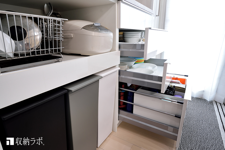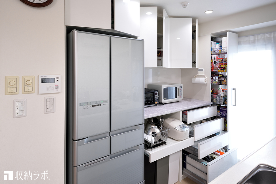 冷蔵庫の上や上段にも収納スペースが出来て、収納に余裕が出て使いやすくなりました。
