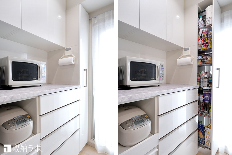 【収納スペースが足りないキッチンの、悩みだったデットスペースを有効活用しました。】