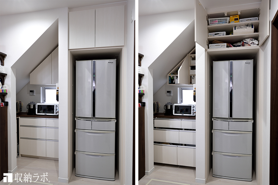 こうしたスペースを活用できるようになって、収納量がしっかり確保できました。
