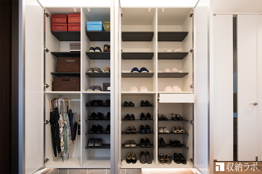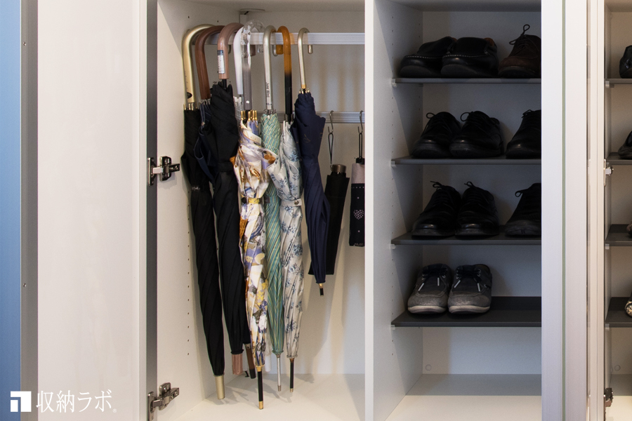 また、靴だけでなく傘も収納したいので、傘の収納場所も作っていただきました。