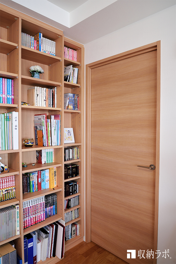 娘が小学校に入学することになって、リビングで勉強ができるように勉強机を用意したのをきっかけに部屋のサイズに合わせてオーダーメイドで本棚を作ることにしました。床から天井まで隙間なく作れて収納量を確保できたことと、地震で倒れないことにとても満足していました。