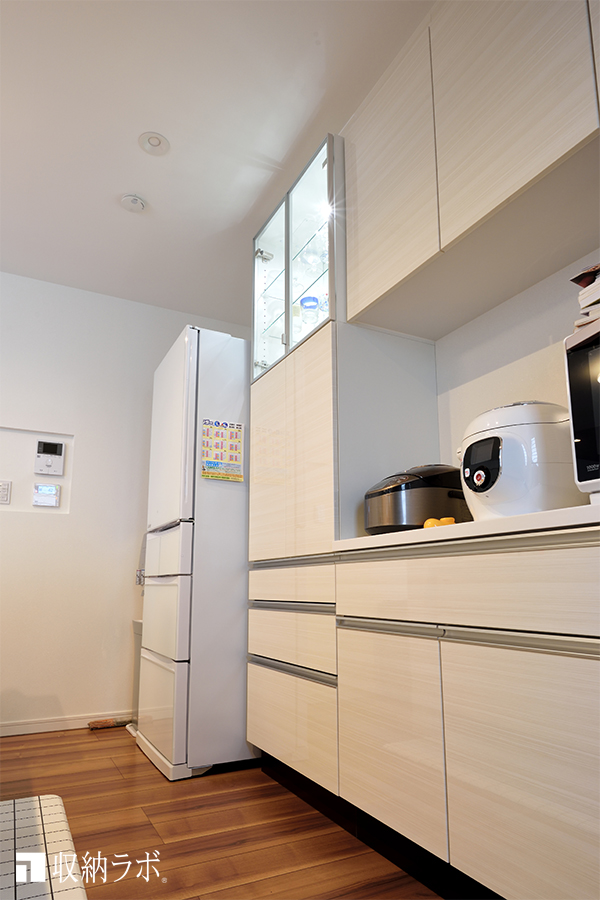 また、食器棚もそれほど大きくはないため収納スペースが足りなくて、部屋がすっきりしないこともあってキッチン周りの収納を整理したくて、食器棚の買い替えを検討していました。家具メーカーのショールームなどを見に行ったのですが、気に入ったものやちょうど良いサイズの食器棚が見つからないため、オーダーメイドができるメーカーも探していました。そんな時にインターネットで収納ラボのことを知って早速ショールームの予約を入れました。