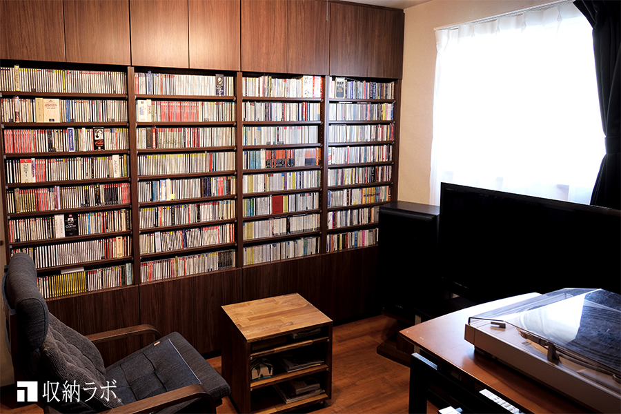 2世帯で暮らすために家をリフォームした際に、書斎を作りました。自分の趣味を楽しむために作った部屋なので、趣味の音楽やDVDを鑑賞しながら、お酒を飲むのが楽しみでした。そこで、大量に所有しているCDとDVDを収納するための壁面収納が欲しくて収納ラボを訪ねました。