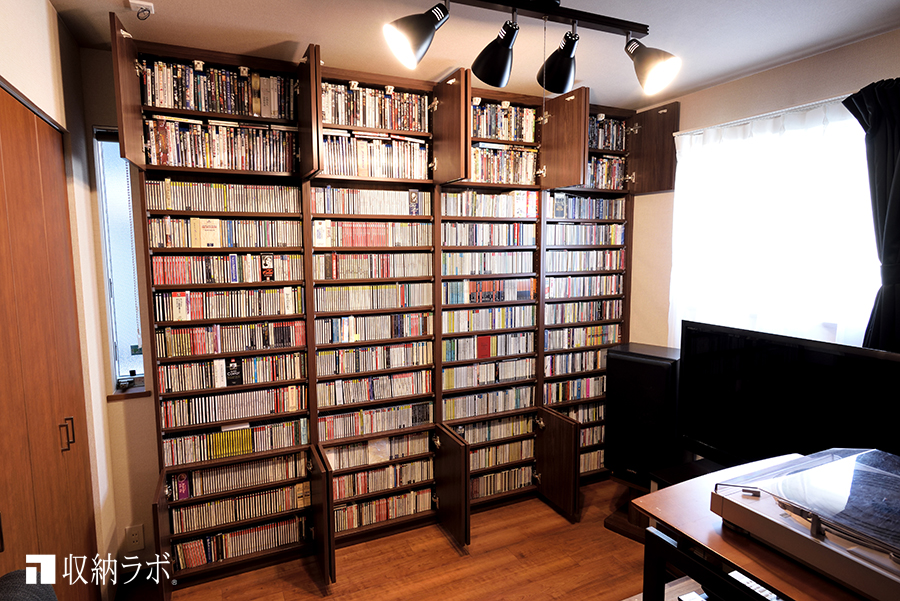 そんな、悩みを解決するために、新しく作った書斎には全てのCDとDVDを一箇所に収納できる壁面収納を探していました。収納量や使い勝手を考えると満足いくものはなく、部屋のサイズにぴったり合うものがなかったのでオーダーメイドできる会社を探していました。