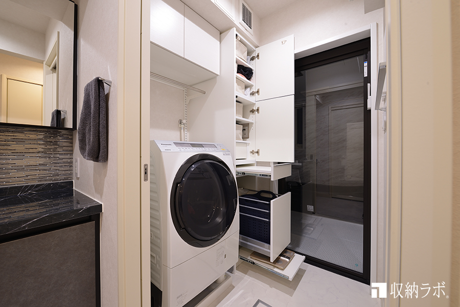 既存の家具ともピッタリ調和したオーダーメイドの洗濯機上収納