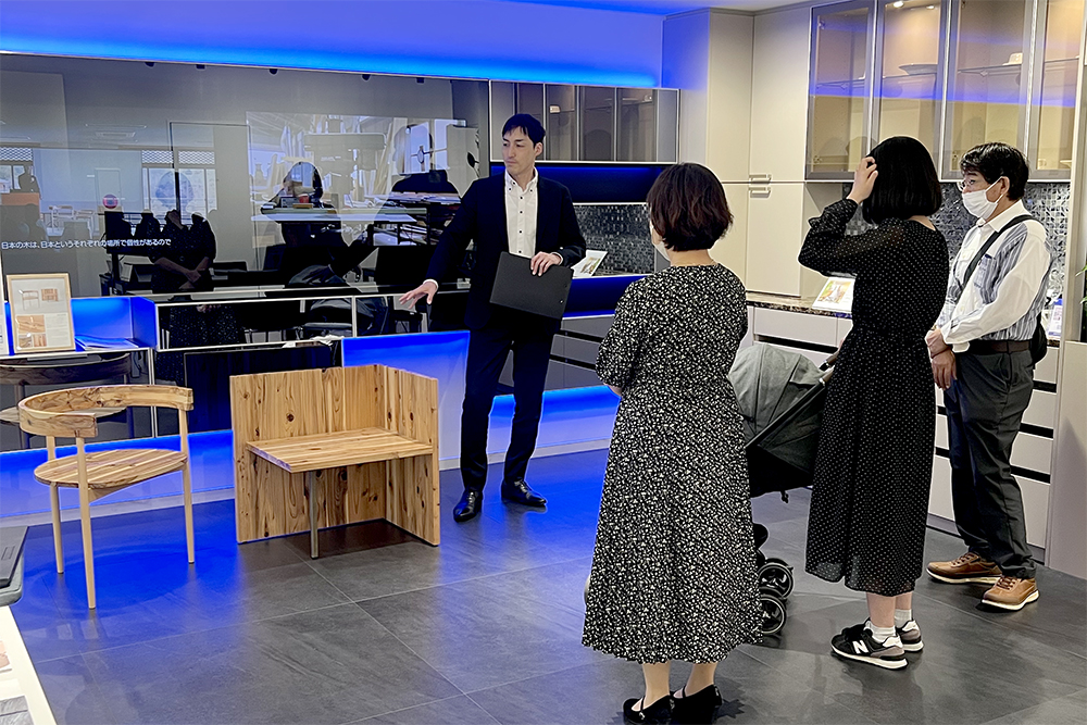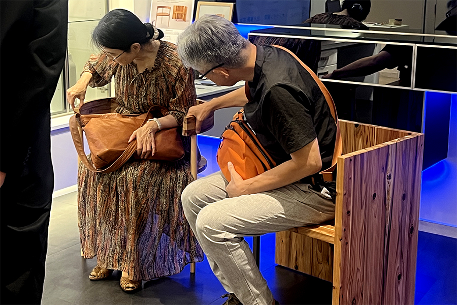 木の質感や独自のデザインに、多くのお客さまが足を止め、実際にAKANEを体験いただきました。2