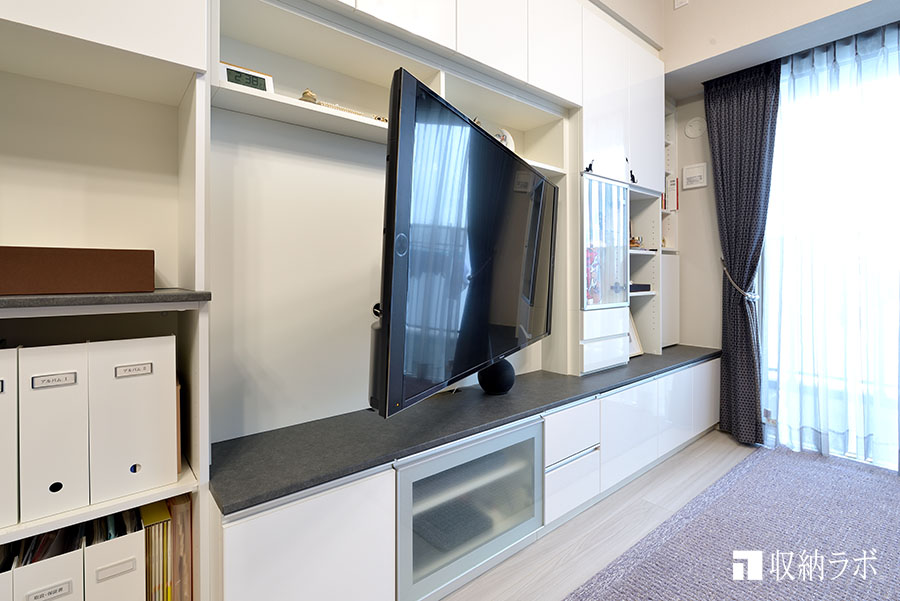 移設先のお部屋の条件に合わせて、収納力と使い勝手を向上させたリビング収納
