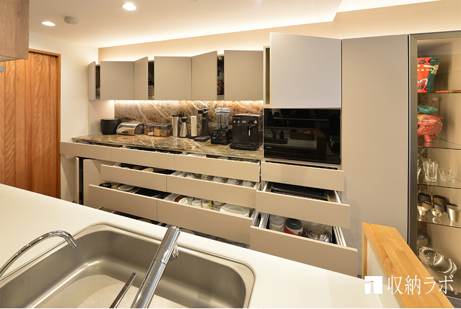 デザイン性と機能性を両立させた、こだわりのキッチン収納です。