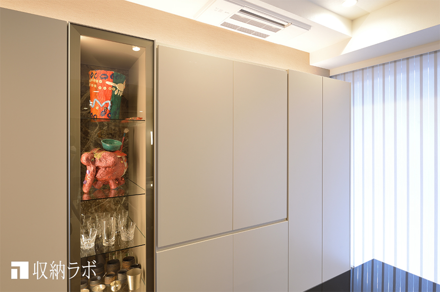 ディスプレイを楽しめるガラスケース付きの壁面収納