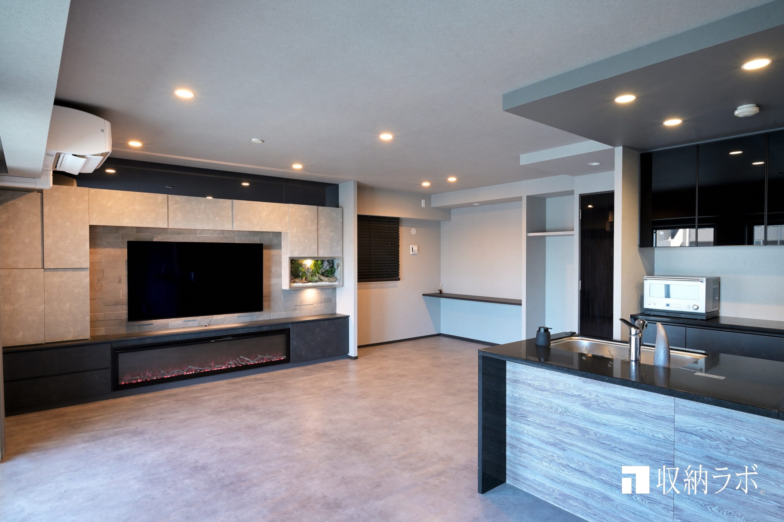 開放感のある部屋の間取りに合わせた、スタイリッシュなリビング収納。