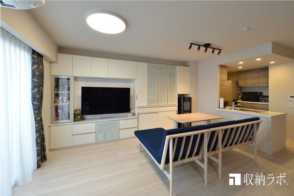オーダー家具の壁面収納と食器棚で、新居に快適な収納を実現
