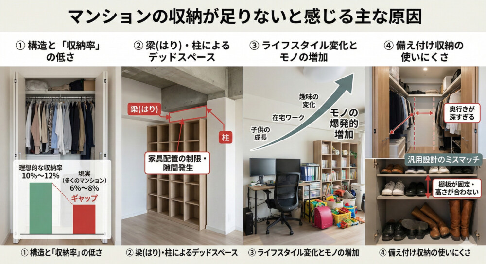 マンションの収納が足りないと感じる主な原因
