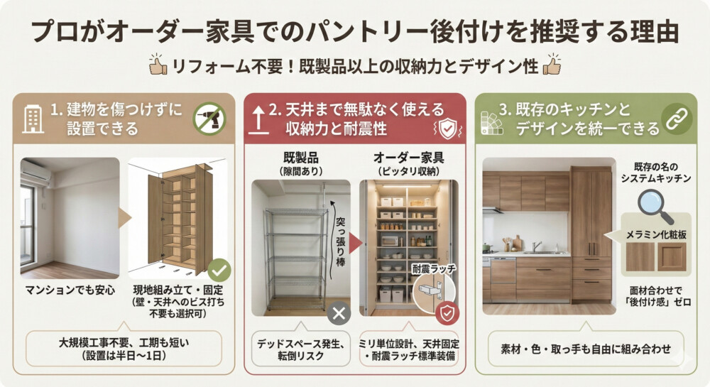 プロがオーダー家具でのパントリー後付けを推奨する理由